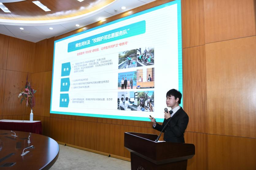 华东理工老员工态文明实践团队以“廿年坚守环保初心,青春助力美丽中国”为主题向全体参会人员进行工作汇报。二十年间,华理学子发挥专业特长,深入学习领会党中央生态文明思想内涵,成立华东理工大学习近平生态文明思想研究会,率先垂范实行校园“河长制”,高质量、高标准开展生态志愿服务实践活动,努力书写“青山不墨千秋画,绿水无弦万古琴”的神州大美图景。
