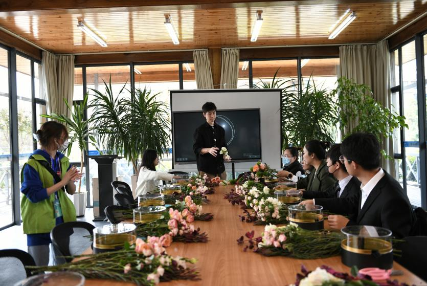 开幕式后,与会代表前往永利官网植物园参观考察并现场进行插花体验式学习,氛围浓厚热烈!